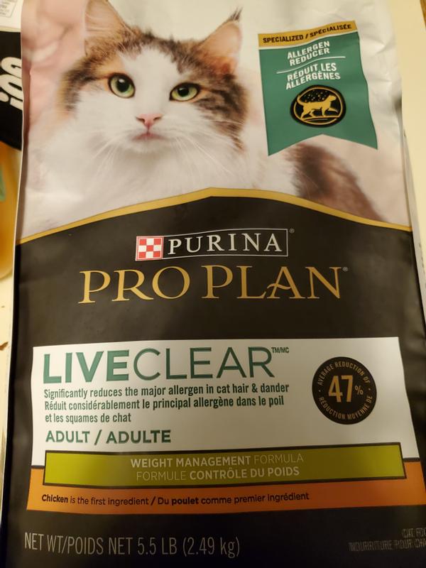 Amazon Com Purina Pro Plan Allergen Reducing Weight Control Dry Cat Food Liveclear Chicken And Rice Formula 3 2 Lb Bag